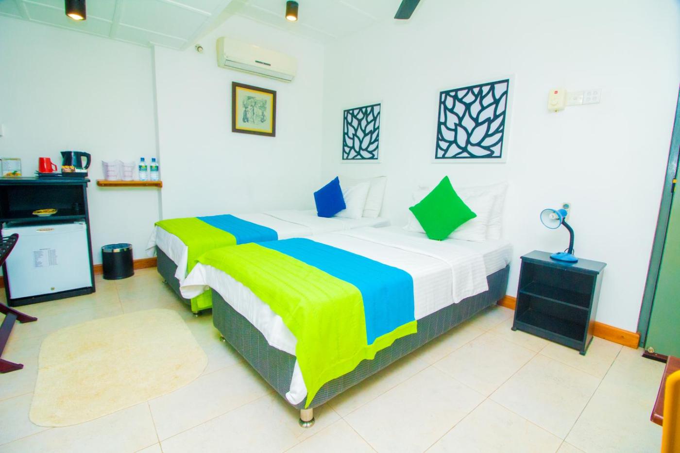 Standard Double or Twin Room. Cooled with air conditioning and a fan, rooms offer a flat-screen TV, a wardrobe, telephone and en suite bathroom with shower facilities and a hairdryer. Coffeetea making facilities and a minibar are included. Free bottled water is also provided. ;